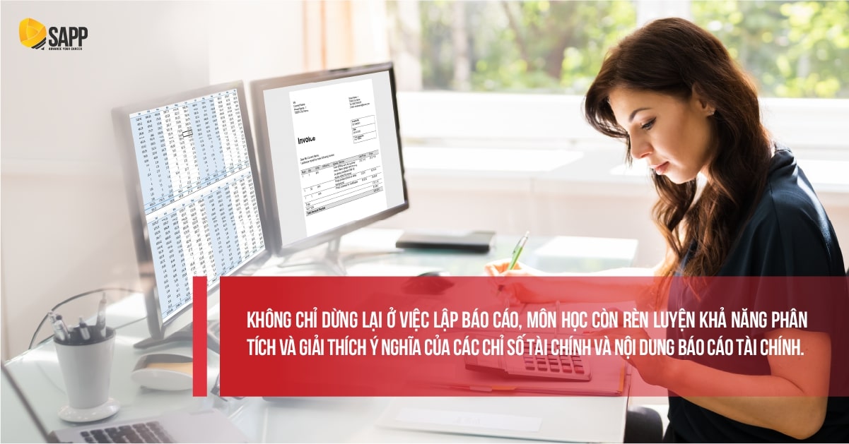 Không chỉ dừng lại ở việc lập báo cáo, môn học còn rèn luyện khả năng phân tích và giải thích ý nghĩa của các chỉ số tài chính và nội dung báo cáo tài chính. Kỹ năng này đặc biệt quan trọng đối với các vị trí tư vấn tài chính, phân tích đầu tư hay kiểm toán – giúp bạn đưa ra các nhận định và khuyến nghị mang tính chiến lược.