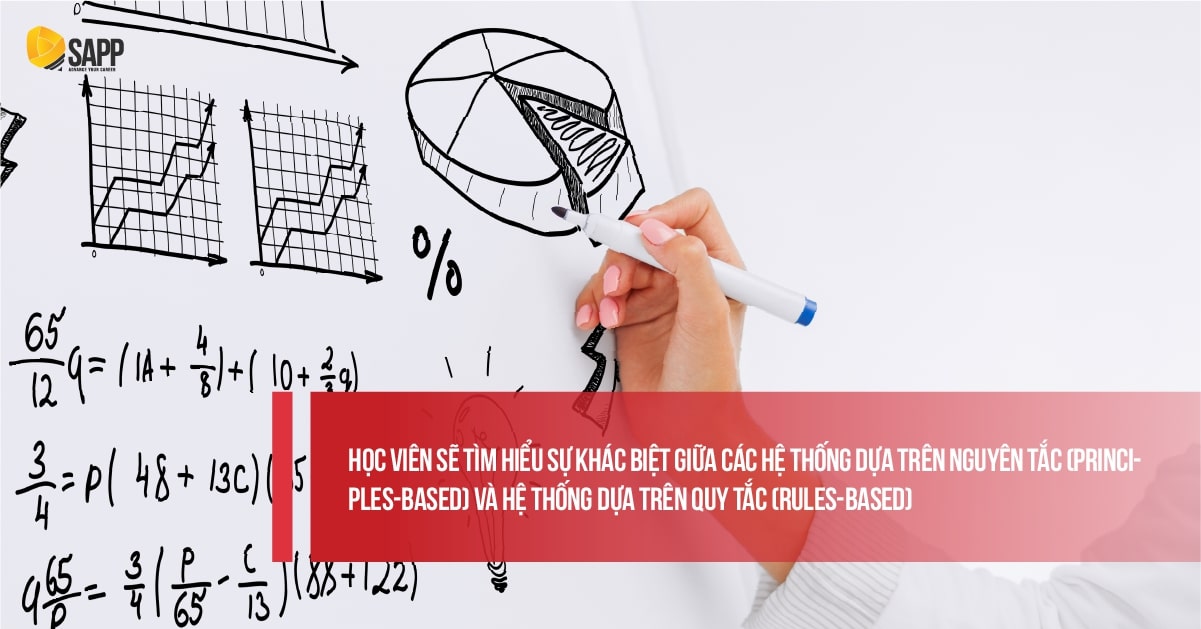 Một phần quan trọng khác của module là hệ thống quy định pháp lý và tổ chức ban hành chuẩn mực kế toán quốc tế. Học viên sẽ tìm hiểu sự khác biệt giữa các hệ thống dựa trên nguyên tắc (principles-based) và hệ thống dựa trên quy tắc (rules-based), cũng như vai trò của các tổ chức như IASB (Hội đồng Chuẩn mực Kế toán Quốc tế) và ISSB (Hội đồng Chuẩn mực Báo cáo Bền vững Quốc tế) trong quá trình xây dựng và ban hành chuẩn mực IFRS.