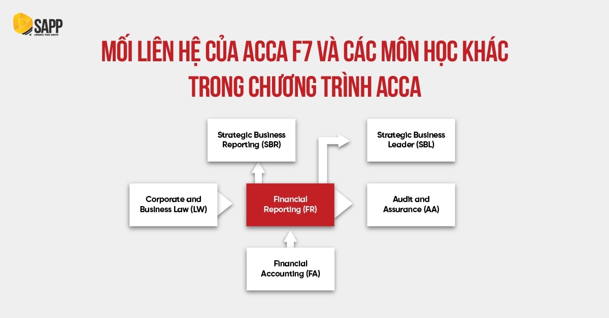 FR/F7 không hoạt động độc lập mà có mối liên kết chặt chẽ với nhiều môn học khác trong ACCA.