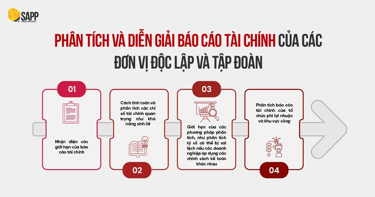 Cuối cùng, module này còn mở rộng sang phân tích báo cáo tài chính của tổ chức phi lợi nhuận và khu vực công, nơi mục tiêu không phải là lợi nhuận mà là hiệu quả trong việc đạt được các mục tiêu xã hội hoặc công ích.