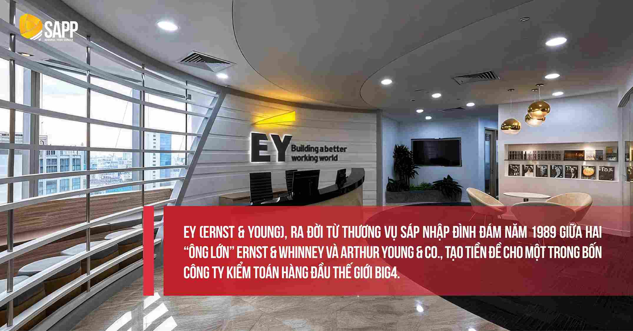 Big4 EY, tên đầy đủ là Ernst & Young, ra đời từ thương vụ sáp nhập đình đám năm 1989 giữa hai “ông lớn” Ernst & Whinney và Arthur Young & Co., tạo tiền đề cho một trong bốn công ty kiểm toán hàng đầu thế giới, gọi chung là Big4 Kiểm toán.