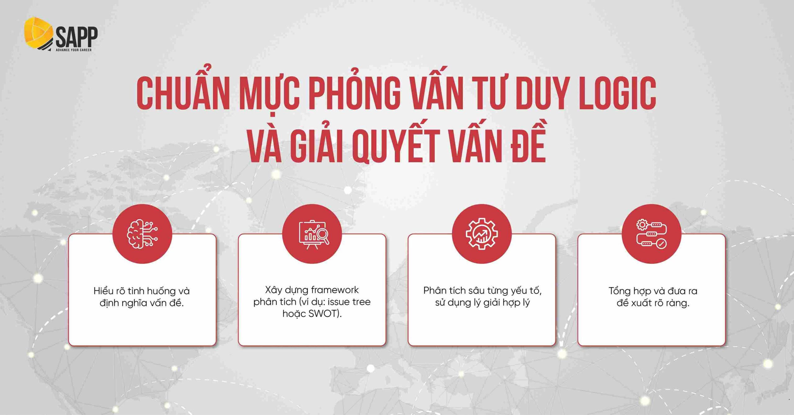 • Ứng dụng thực tế: Tư duy logic giúp ứng viên hiểu sâu vấn đề và đề xuất hướng giải quyết sáng tạo khi đối mặt với tình huống bất ngờ.