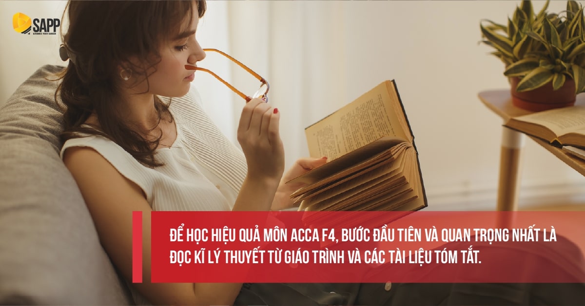 Để học hiệu quả môn ACCA F4, bước đầu tiên và quan trọng nhất là đọc kĩ lý thuyết từ giáo trình và các tài liệu tóm tắt. Việc hiểu rõ lý thuyết là cơ sở để vận dụng các kiến thức vào thực tế sau này. Trước khi đi sâu vào chi tiết từng phần, học viên nên lướt qua từng heading của học phần để có cái nhìn tổng quan về nội dung sẽ học. Điều này giúp học viên dễ dàng hình dung mối liên hệ giữa các khái niệm và xây dựng nền tảng kiến thức vững chắc hơn.