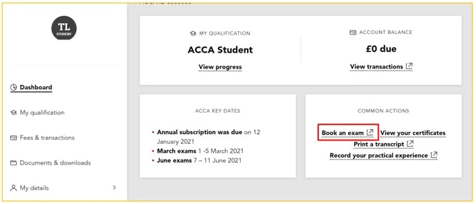 Bước 3: Đăng ký thi ACCA (Add an Exam)