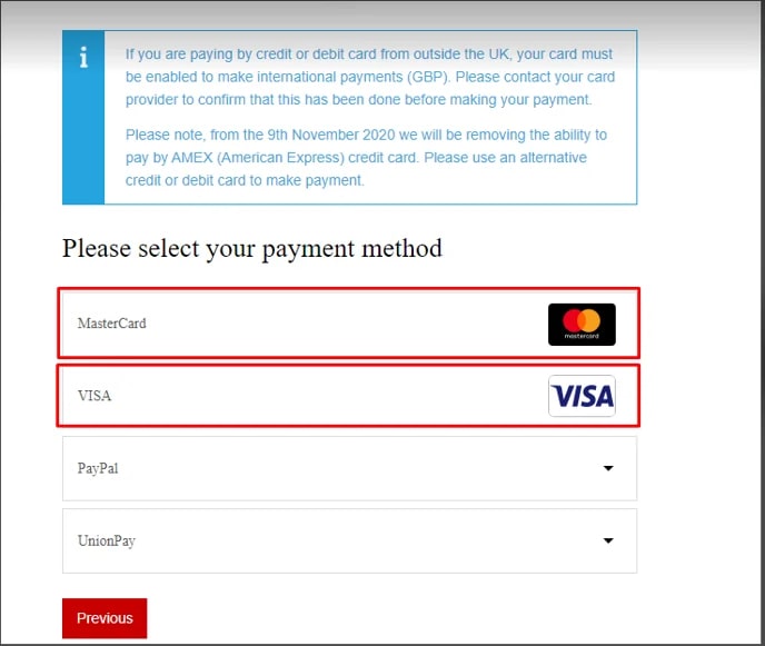 Cách đăng ký thi ACCA - chọn thẻ thanh toán