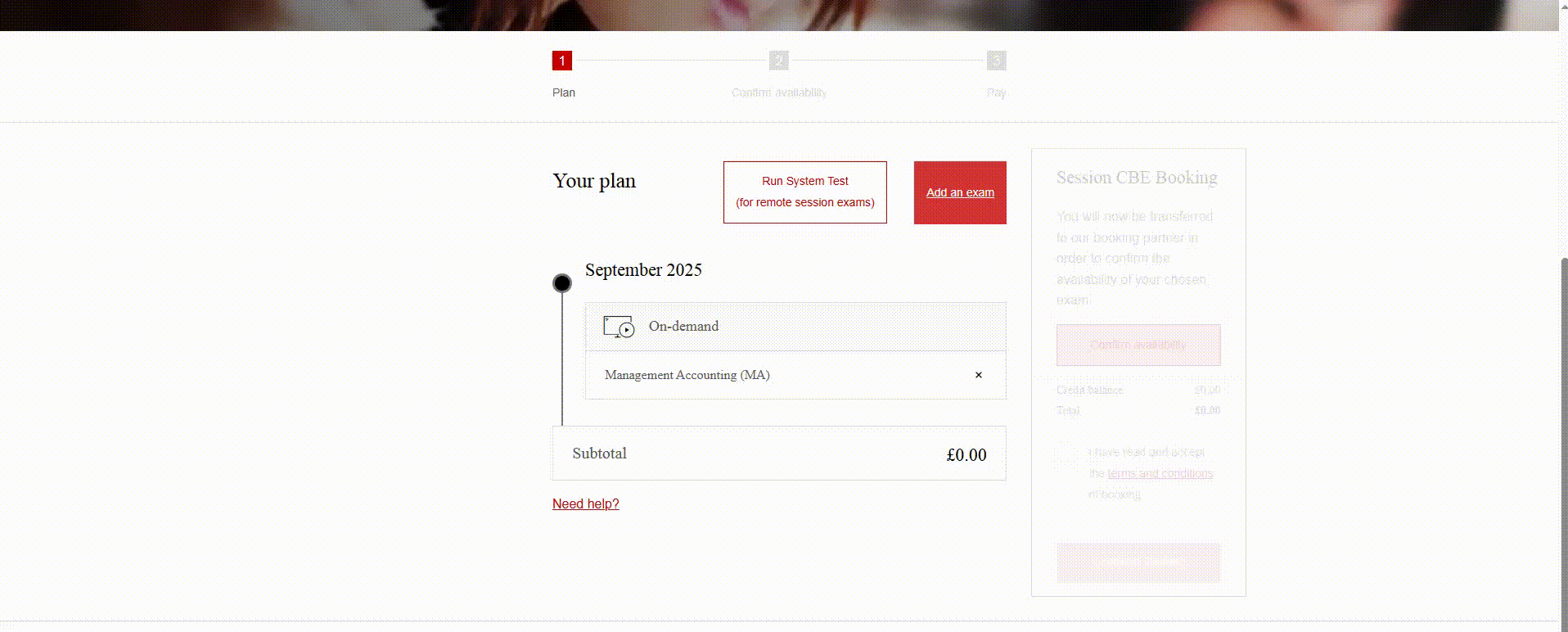 - Lựa chọn môn thi và hình thức thi --> Chọn Add to your plan