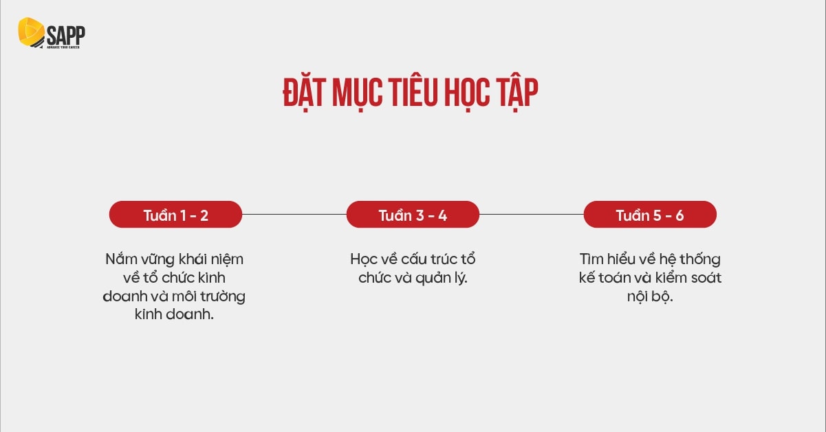 Để tự học ACCA F1 hiệu quả, bạn cần xây dựng một chiến lược học rõ ràng. Ba bước quan trọng trong hành trình này bao gồm: đặt mục tiêu học tập, thiết lập timeline phù hợp và kiên trì thực hiện kế hoạch. Mỗi bước đều đóng vai trò quan trọng giúp bạn duy trì động lực và đảm bảo tiến độ học tập.