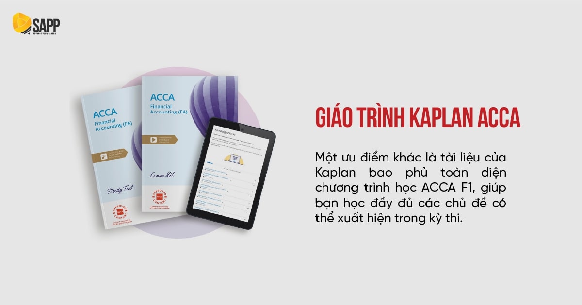 Một ưu điểm khác là tài liệu của Kaplan bao phủ toàn diện chương trình học ACCA F1, giúp bạn học đầy đủ các chủ đề có thể xuất hiện trong kỳ thi. Điều này rất quan trọng vì nó giúp bạn không bỏ sót bất kỳ phần nào, tạo ra nền tảng vững chắc để thi đạt kết quả cao.
