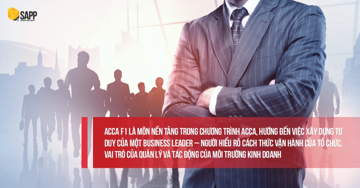 F1 ACCA là môn nền tảng trong chương trình ACCA, hướng đến việc xây dựng tư duy của một Business Leader – người hiểu rõ cách thức vận hành của tổ chức, vai trò của quản lý và tác động của môi trường kinh doanh. Đây không chỉ là môn học lý thuyết đơn thuần mà còn là bước đầu tiên giúp bạn hình thành nền tảng tư duy lãnh đạo trong môi trường doanh nghiệp hiện đại.