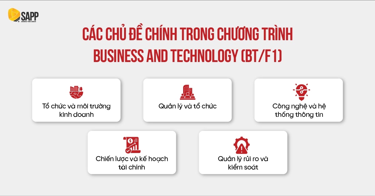 Cấu trúc chương trình F1: Chương trình ACCA F1 cung cấp các kiến thức cơ bản về kinh doanh và quản lý, giúp bạn xây dựng nền tảng cho các môn học sau này. Các chủ đề chính trong chương trình F1 bao gồm: