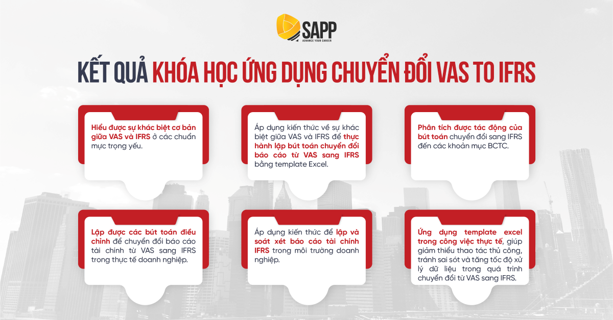 Đến với khóa Ứng dụng chuyển đổi VAS to IFRS tại SAPP, người học sẽ lần lượt được đi qua các nội dung kiến thức như sau: