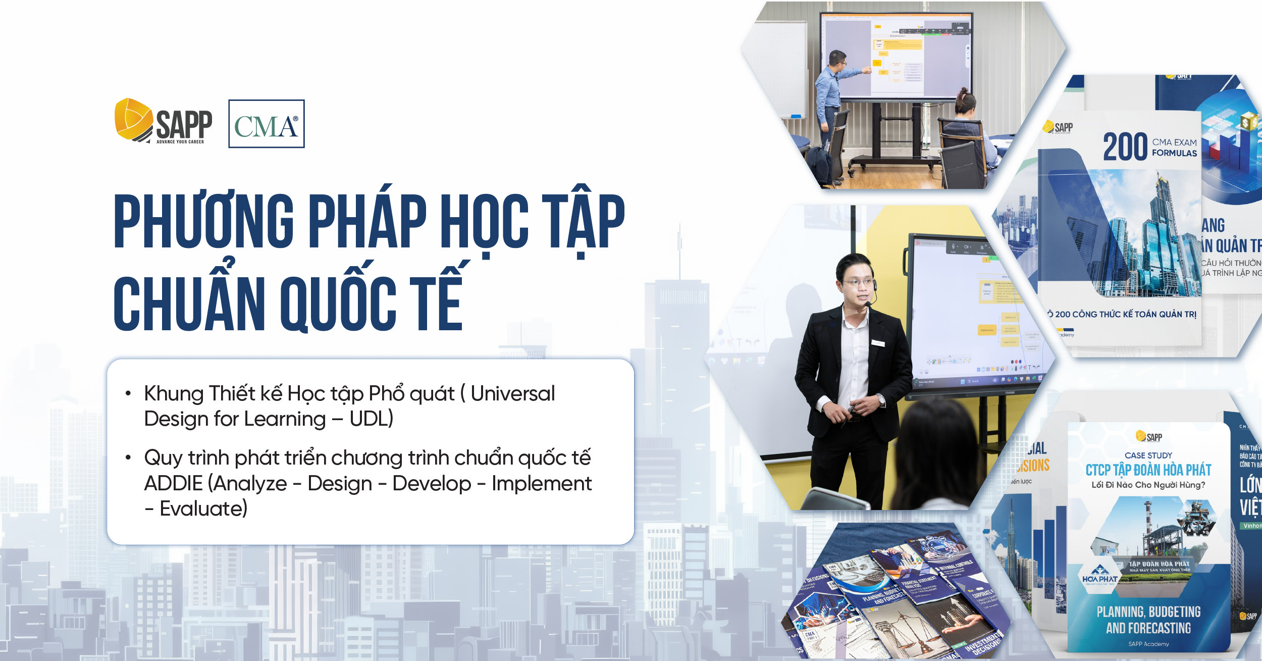 Chương trình đào tạo tại SAPP được thiết kế trên nền tảng phương pháp giảng dạy hiện đại, vận dụng linh hoạt các nguyên lý thiết kế giáo dục phổ quát (UDL – Universal Design for Learning) cùng quy trình phát triển chương trình chuẩn quốc tế (ADDIE: Phân tích – Thiết kế – Phát triển – Triển khai – Đánh giá). Nhờ vậy, nội dung giảng dạy vừa ngắn gọn, dễ tiếp cận, vừa đảm bảo chiều sâu – phù hợp với nhiều đối tượng học viên, từ người đã có nền tảng tài chính đến những Anh/Chị chuyển ngành hoặc đi làm lâu năm.