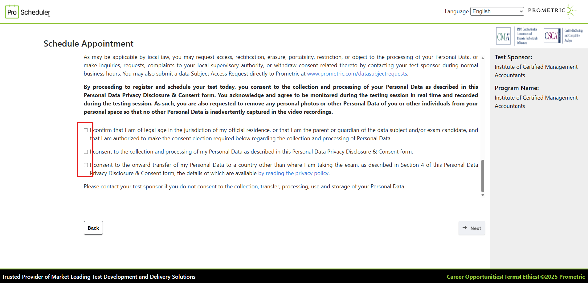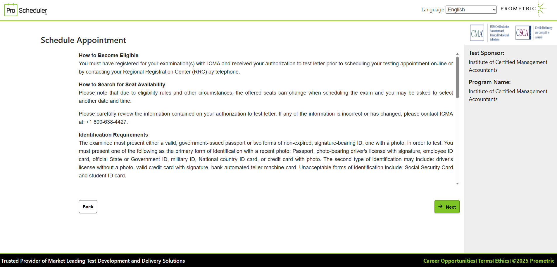 Sau khi đăng ký tài khoản trên website của IMA, bạn cần đăng ký lịch thi ở Trung tâm khảo thí Prometric. Đây là cơ sở được IMA ủy quyền tổ chức kỳ thi CMA và có trụ sở hoạt động tại Việt Nam.