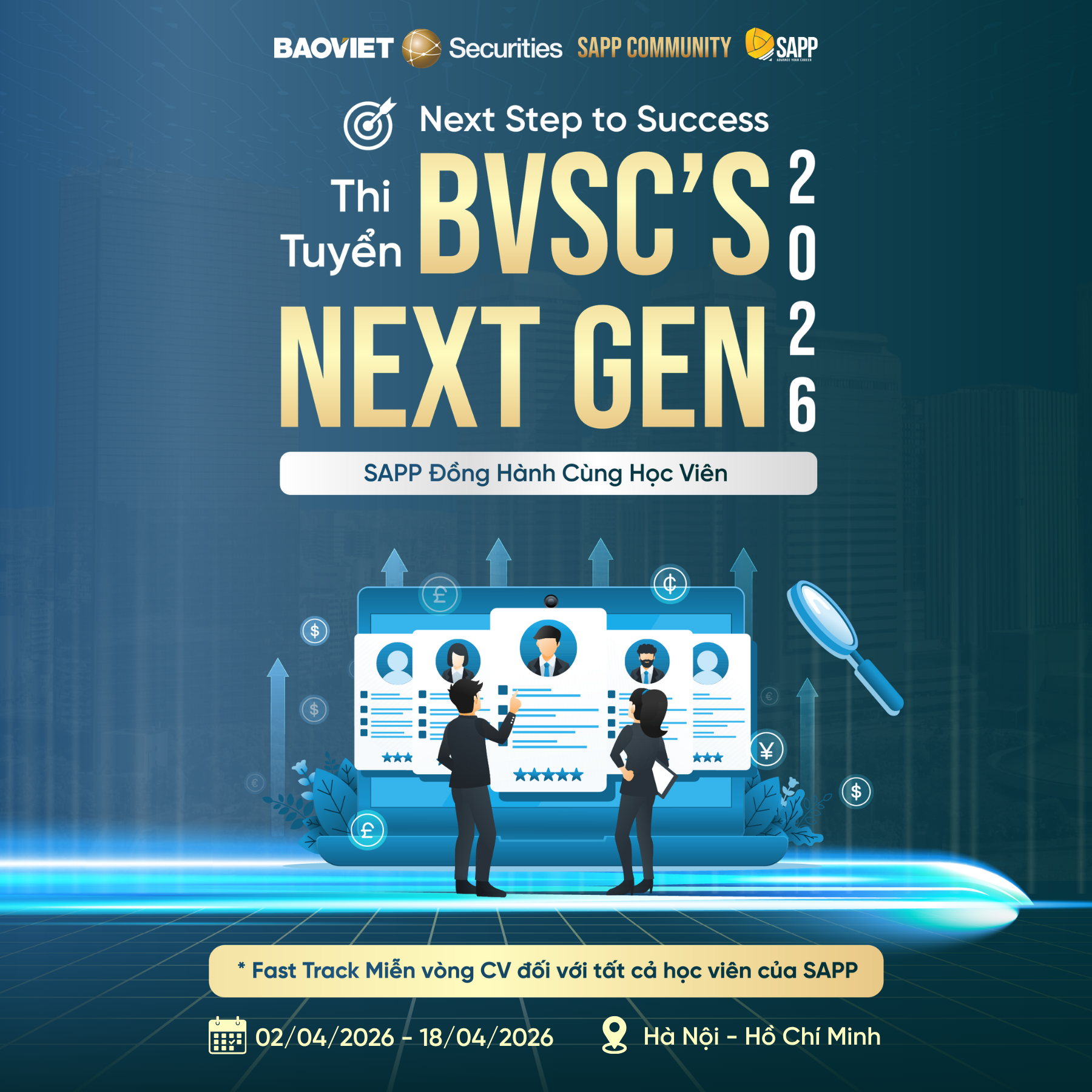 Lưu ý: SAPP sẽ tiếp nhận và trực tiếp chuyển hồ sơ tới bộ phận Nhân sự BVSC. Trường hợp không gửi qua kênh này, quyền lợi Fast Track sẽ không được đảm bảo.